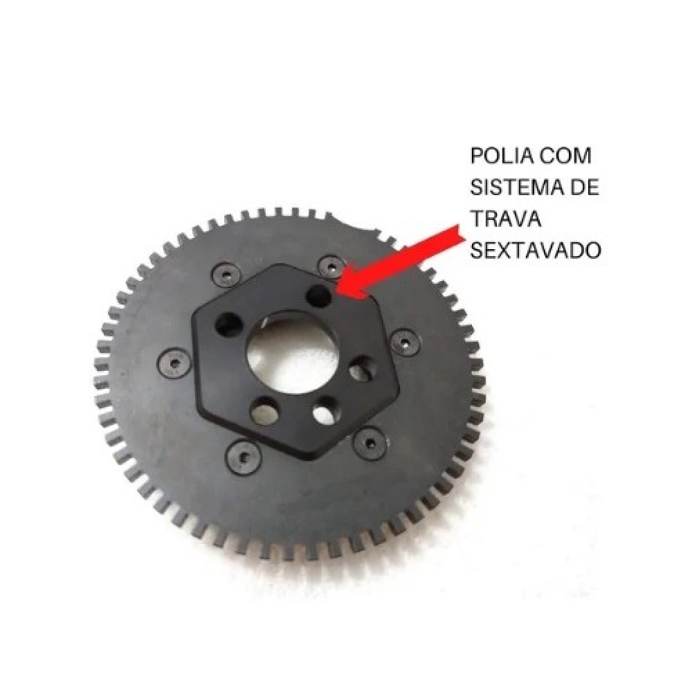 Formato usinado em sextavado na parte interna da polia para melhor travamento da roda fônica.